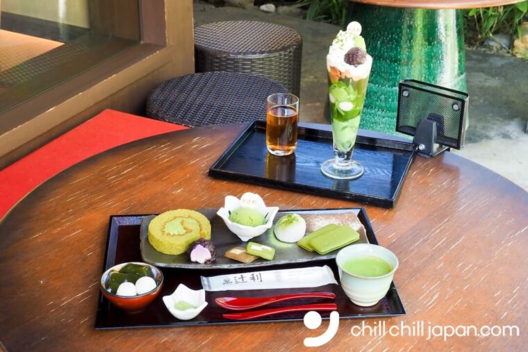 สึจิริมัทฉะเพลท เป็นเซ็ทที่เราจะได้ชิมขนมต่างๆของทางร้านที่มัทฉะเลิฟเวอร์จะต้องถูกใจแน่นอน มีทั้งคุ๊กกี้ ไอศรีม ขนมเค้ก และวาราบีโมจิ ที่มาพร้อมกับมัทฉะแท้ ๆ มาแบบร้อน ๆ ตัดความหวานได้อย่างลงตัว ซึ่งบางอย่างเราสามารถซื้อกลับเป็นของฝากได้ด้วย