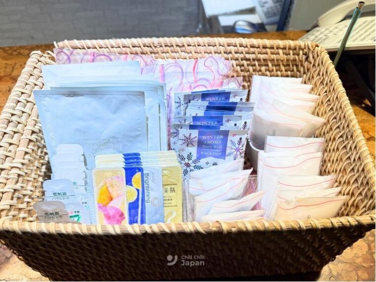 Amenity Bar พิเศษก่อนเข้าพัก ทางโรงแรมยังมี Amenity Bar ให้เราหยิบเพิ่มเติมก่อนเข้าเช็คอิน ซึ่งจะเป็นไอเทมที่ไม่ได้เตรียมไว้ในห้อง ที่โรงแรมเขาเตรียมไว้ให้แขกผู้เขาพักโดยเฉพาะ ไม่ว่าจะเป็น มาสก์หน้า น้ำยาบ้วนปาก สกินแคร์ ผงอโรม่าสำหรับใส่แช่น้ำ ผ้าสำหรับขัดตัว เซ็ตสำลี ซึ่งเราสามารถหยิบตามที่จะใช้ได้เลย