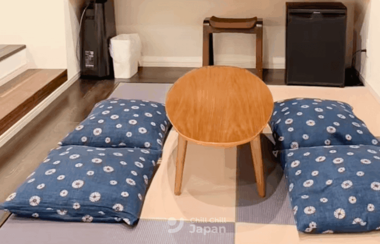 มีโต๊ะนั่งแบบญี่ปุ่นให้ได้นั่งชิลล์จิบชาใช้เวลาสบาย ๆ ในโรงแรม เหมาะกับทริปแบบครอบครัวสุด ๆ